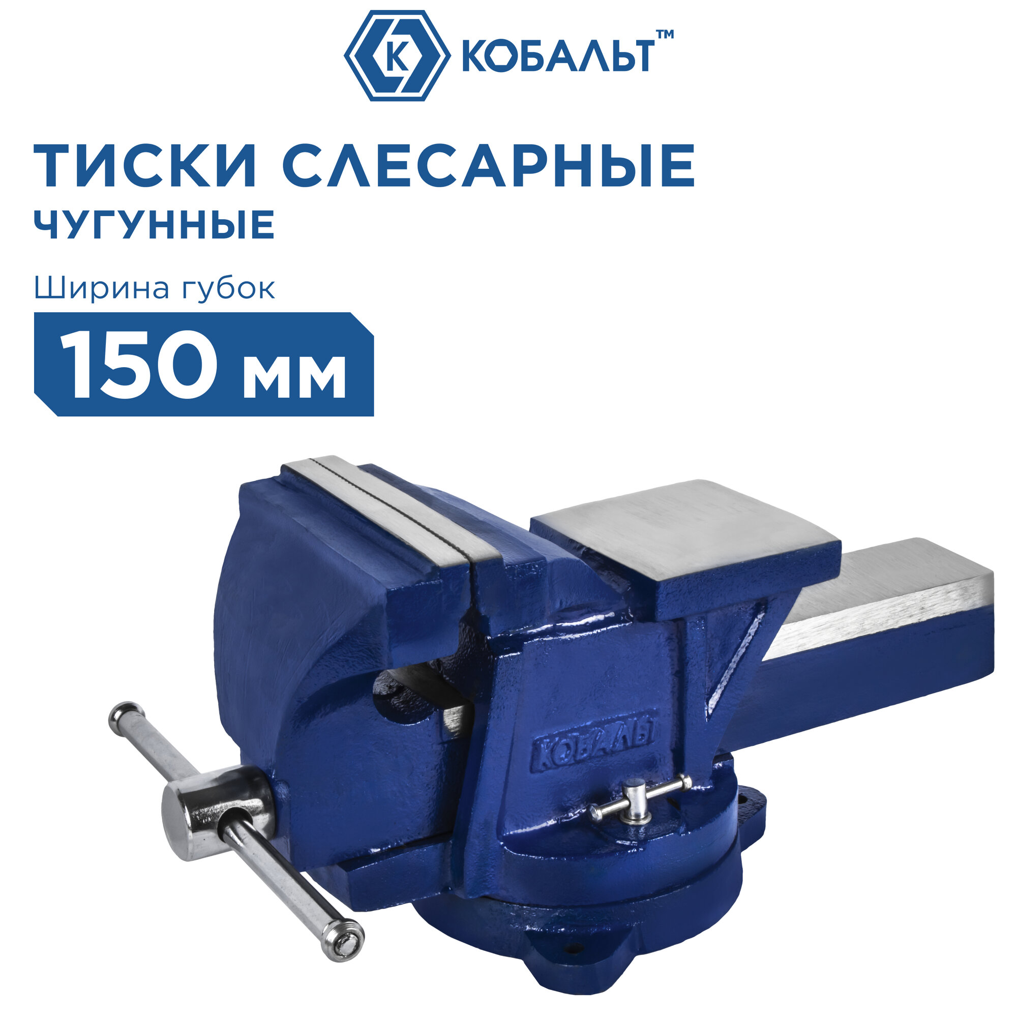 Тиски слесарные поворотные кобальт ширина губок 150 мм, захват 150 мм, 17 кг, наковальня, (245-992)