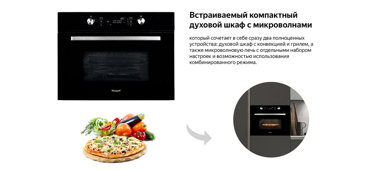 Встраиваемый компактный духовой шкаф с СВЧ\nWeissgauff OE 449 PDB