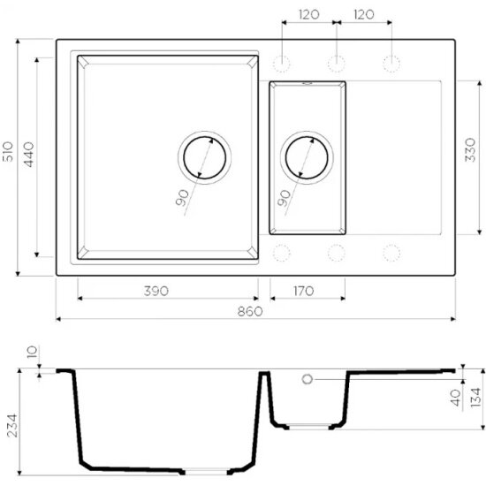 | Размеры доп. чаши (ДхШхГ) | 170x330x130 мм |