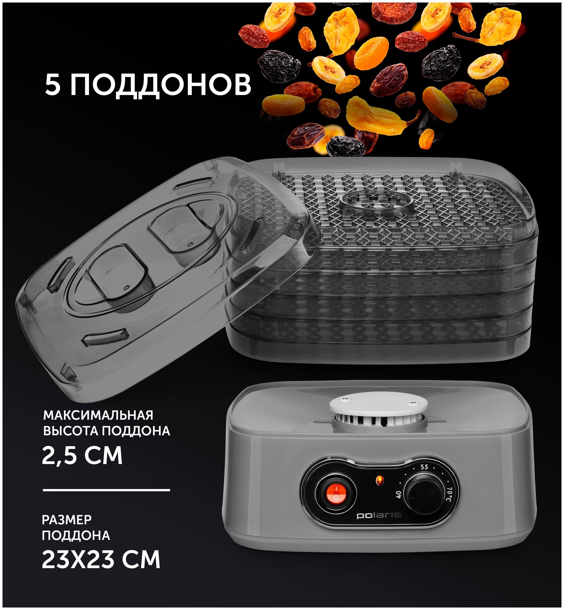 Сушилка для продуктов Polaris PFD 2505 дегидратор, серая, вместительность 5,5 кг