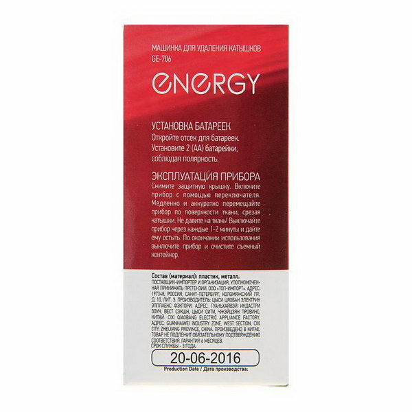 Машинка для удаления катышков GE-706, ENERGY (Артикул: 4100003530)