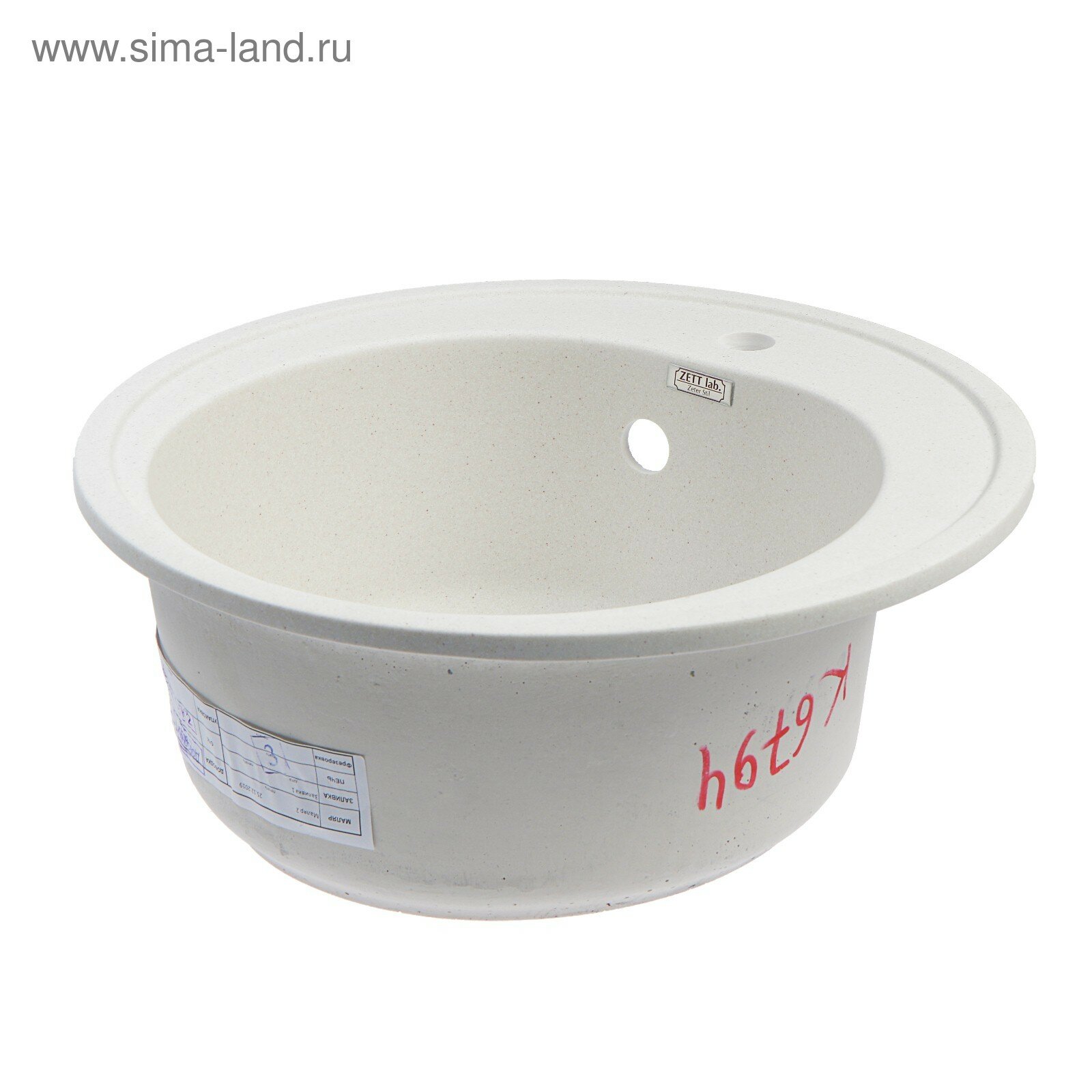 Мойка кухонная из камня ZETT lab. 3/Q7, d=510 мм, глубина 19 см, матовая, цвет хлопок./В упаковке шт: 1