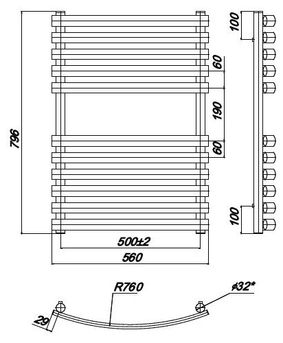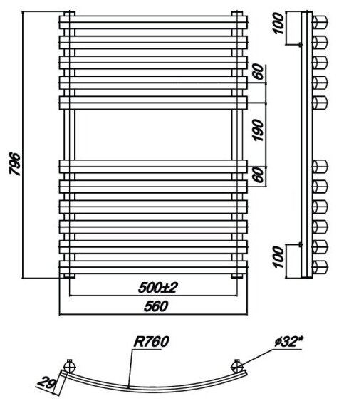 Лучшие цены. Подключение: нижнее 1/2" BP Вид обработки: плазменная полировка Конструкция: вертикальные стойки 32 мм горизонтальные перекладины ОВАЛ 38 мм гарантия: 10 лет КОМПЛЕКТАЦИЯ*: вентиль запорный угловой - 1 пара, эксцентрик - 2 шт, отражатели - 2 шт, комплект креплений к стене - 4 шт. *Все необходимое для монтажа идет в комплекте с изделием (в одной упаковке). Магазины в вашем городе.