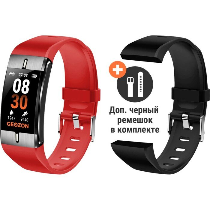 Фитнес-браслет Geozon Fit Plus G-sm14red, уведомление, пульс, шагомер, тренировки, красный Geozon 94 .