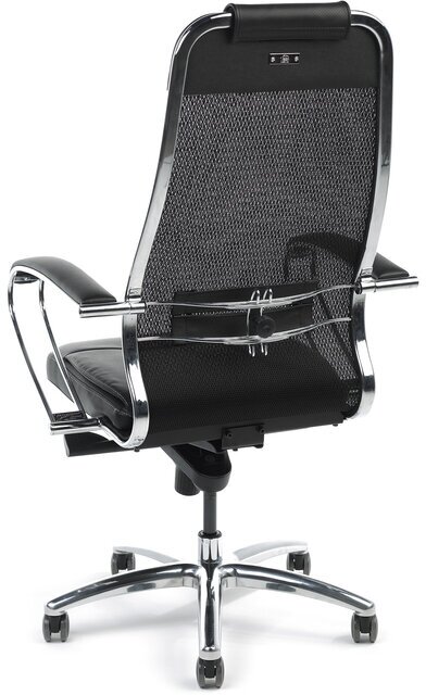 Кресло руководителя Метта "Samurai" SL-1.03/SL-1.04, сетка/кожа черная, механизм качания