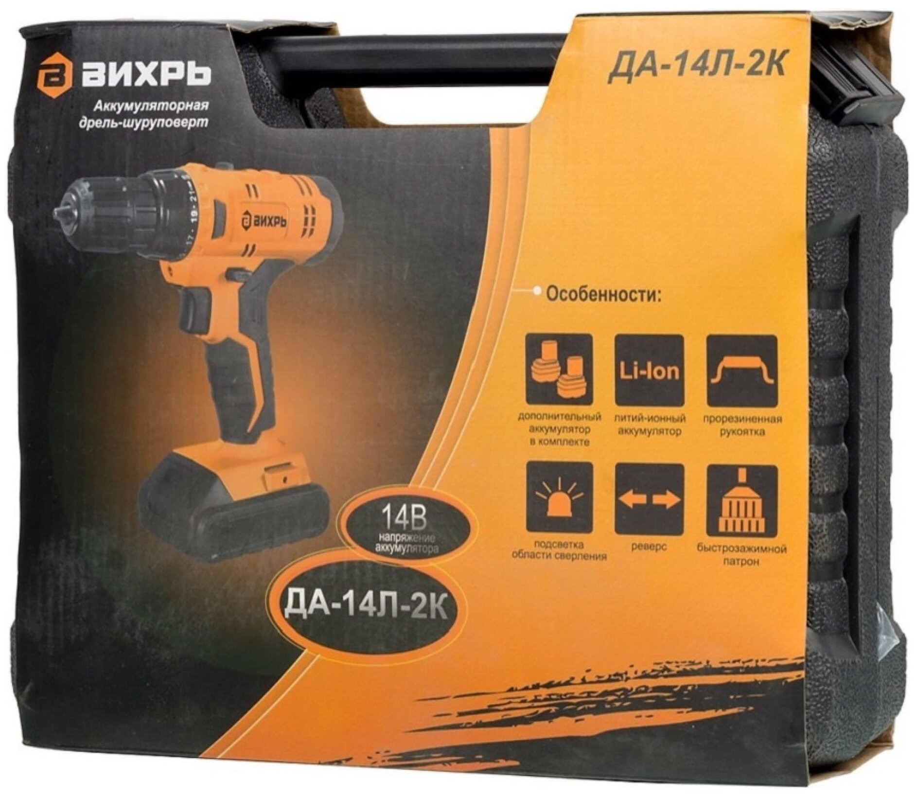 Дрель-шуруповерт Вихрь ДА-14Л-2KА (ДА-14Л-2K) (1,5 А/ч) черно-оранжевый