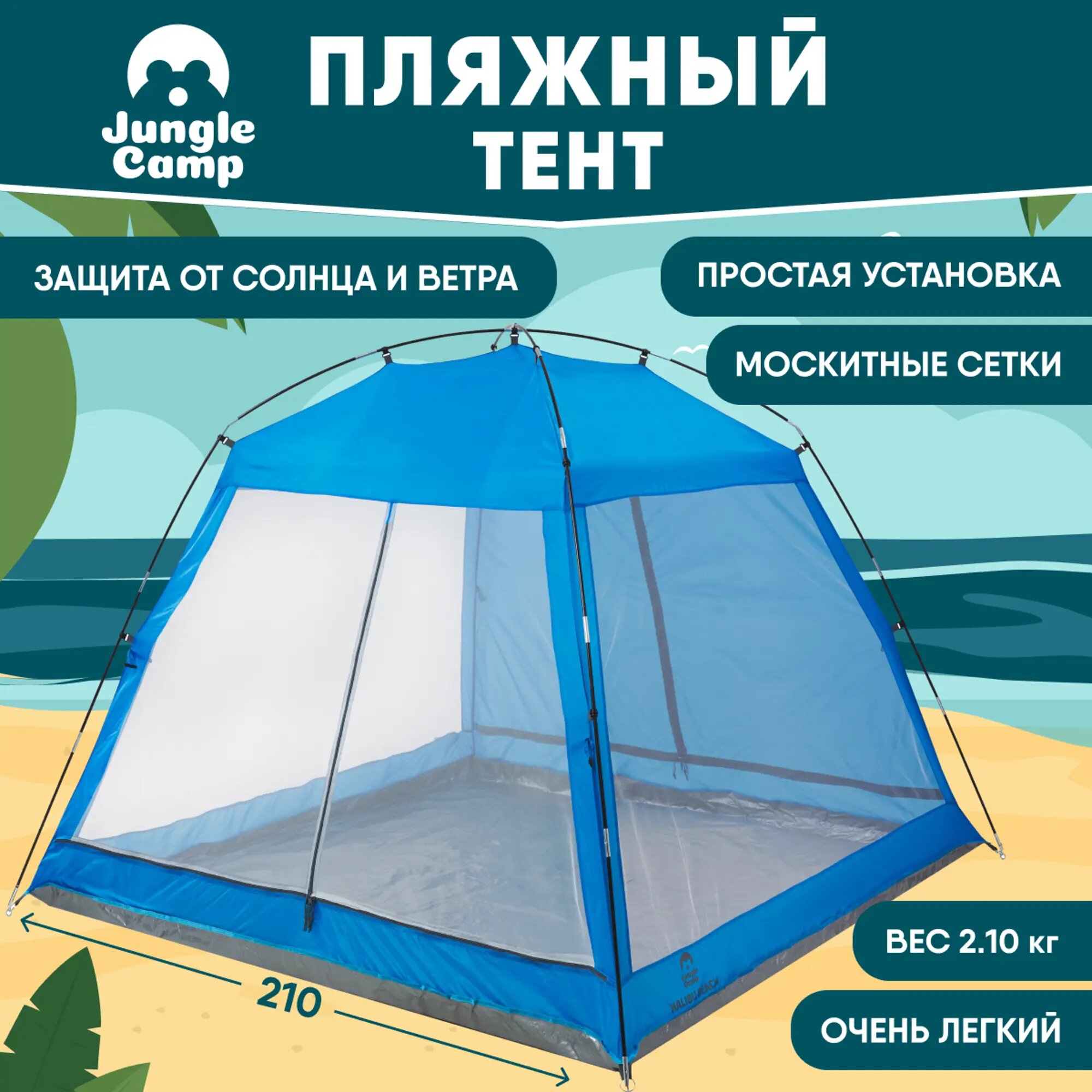 Jungle Camp Палатка пляжная Jungle Camp Malibu Beach синяя 70862