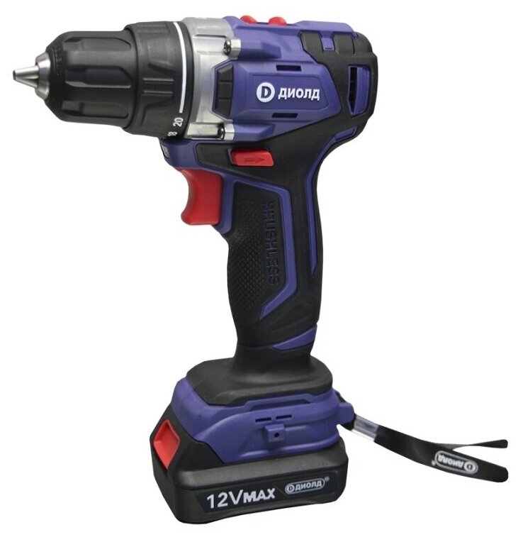 Дрель-шуруповерт аккумуляторная диолд ДЭА-12ЛИ-08, кейс, бесщеточный двигатель, 2 аккум., 2 скор