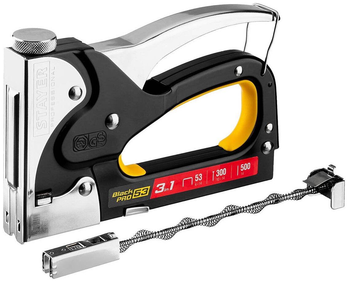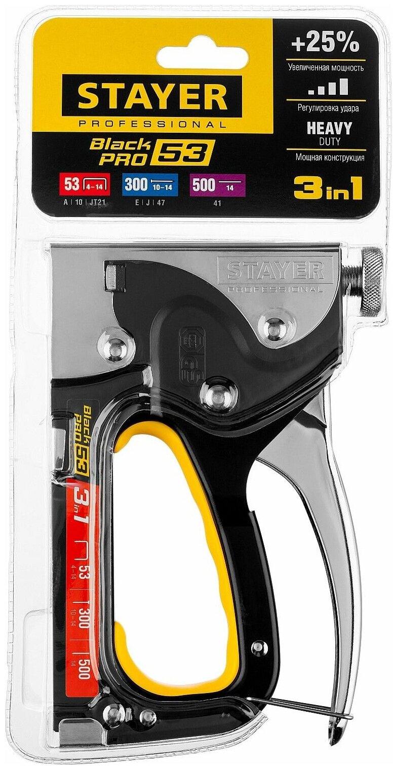 Степлер для скоб "BlackPro 53" 3-в-1: тип 53 (4-14 мм) / 300 (10-14 мм) / 500 (14 мм), Stayer Profes .