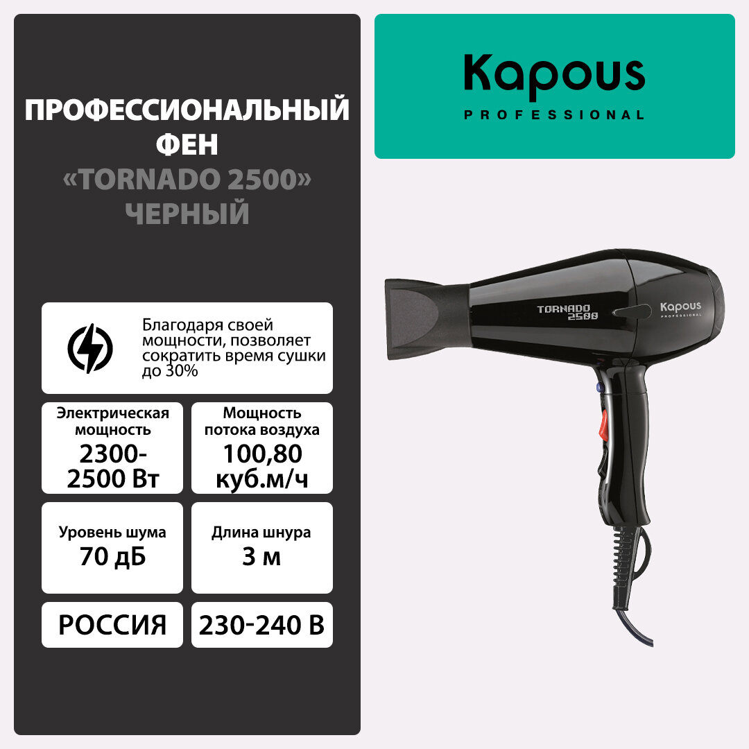 Kapous Professional Фен для укладки волос Tornado 2500, профессиональный, Черный