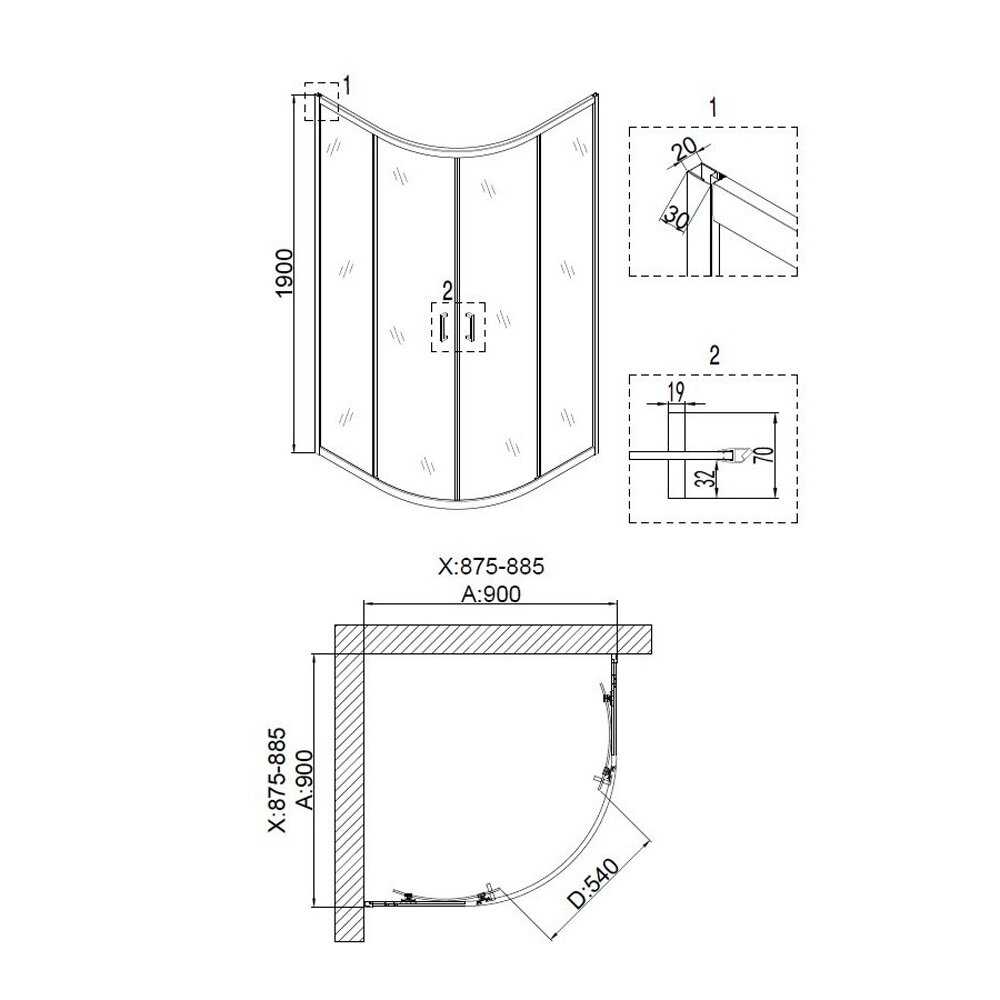 Душевое ограждение NG- 6606-08 (90*90*190) полукруг, двери раздвижные, 1 место 21 900 ₽ Подробнее