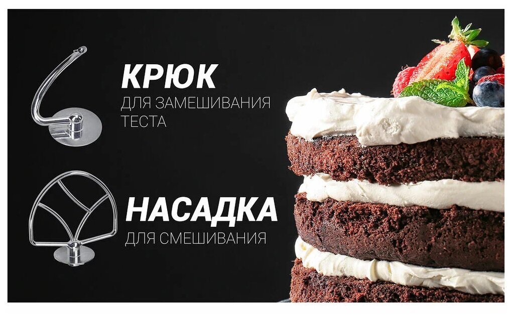 Лучшие цены. 5 в 1: Планетарный миксер с 3-мя насадками, Блендер, Мясорубка. Технология SmartMIX - прибор автоматически подбирает оптимальную мощность работы для каждого вида и количества ингредиентов. Технология PROtect+ защита двигателя от перегрева. Надёжная конструкция со стальными шестернями. Планетарное вращение насадок. Чаша из нержавеющей стали. Объем чаши 5 л. 6 скоростных режимов. Плавная регулировка скорости. Импульсивный режим. Венчик для взбивания. Насадка для смешивания. Крюк для замешивания теста. Магазины в вашем городе.