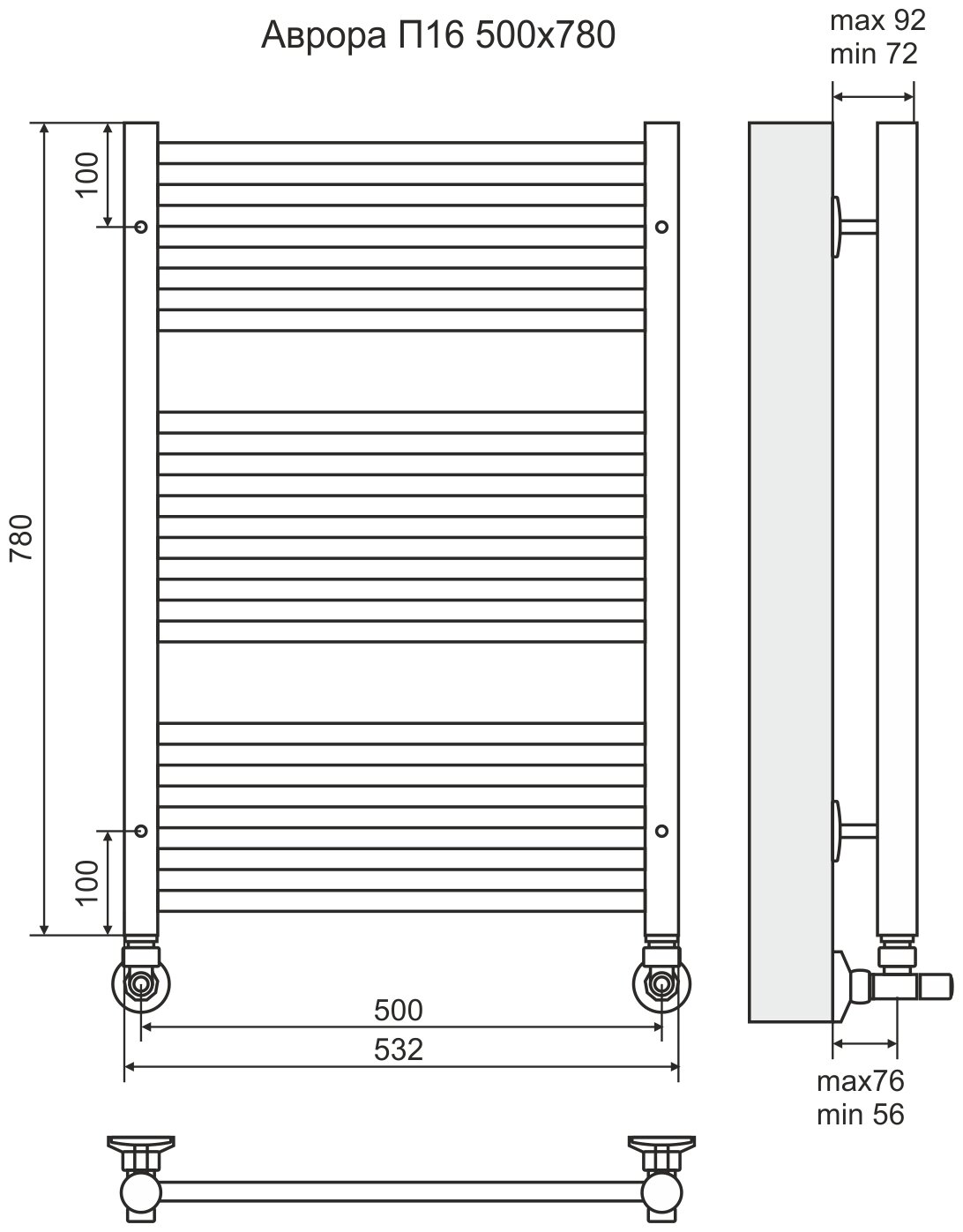 Полотенцесушитель полотенцесушитель водяной Terminus Полотенцесушитель водяной Terminus Аврора П16 500*780