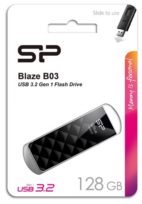 Флеш-память Silicon Power Blaze B03 128Gb/USB 3.2/Черный (SP128GbUF3B03V1K)