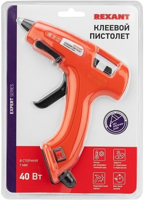 Пистолет клеевой REXANT, 40 Вт, Ø7 мм, «эксперт», блистер