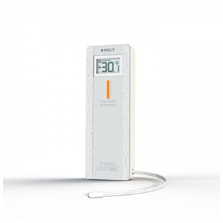 Лучшие цены. Универсальный радиодатчик RST 02252 подходит к моделям 8877Х, 0278Х, 3277Х, 77110. Датчик имеет выносной провод сенсор, таким образом, нет необходимости выставлять сам датчик на улицу, а можно расположить возле окна, просунув проводок под рамой. На датчике есть небольшой дисплей, на котором отображается информация о наружной температуре с термосенсора. Характеристики: Выносной термощуп, соединенный проводом длиной 90 смИзмерение температуры среды, в которую погружен термощупВозможность измерения температуры. Магазины в вашем городе.