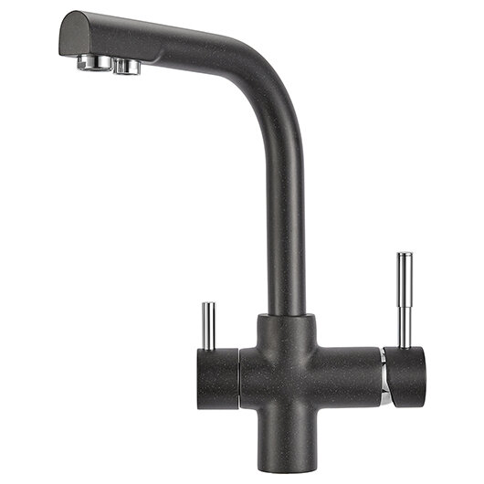 Смеситель для кухни Granula / Гранула 2015 двухрычажный с подключением фильтра питьевой воды, гибкая подводка гранит черный, высота 290мм излив 210мм / кран для раковины