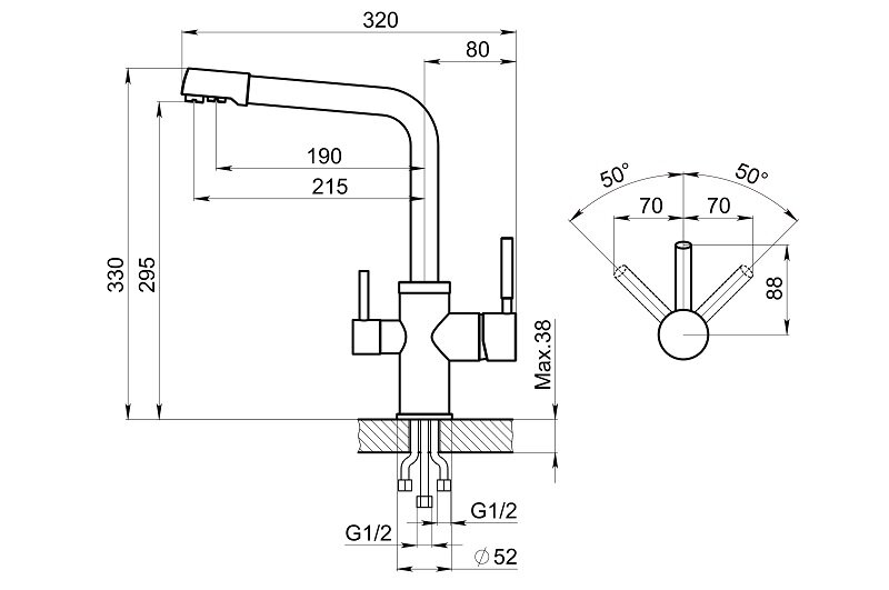 | Высота смесителя | 316 мм |