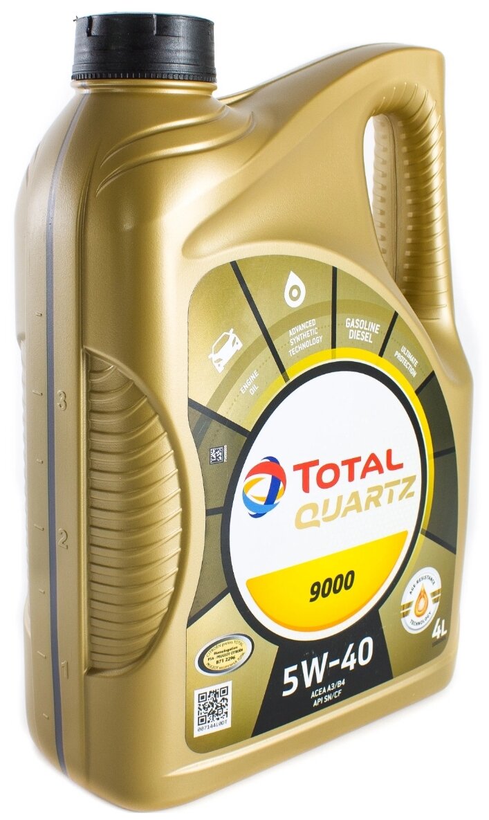Масло моторное TOTAL Quartz 9000 5W-40 SN/SM/CF A3/B4 синтетическое 4 л
