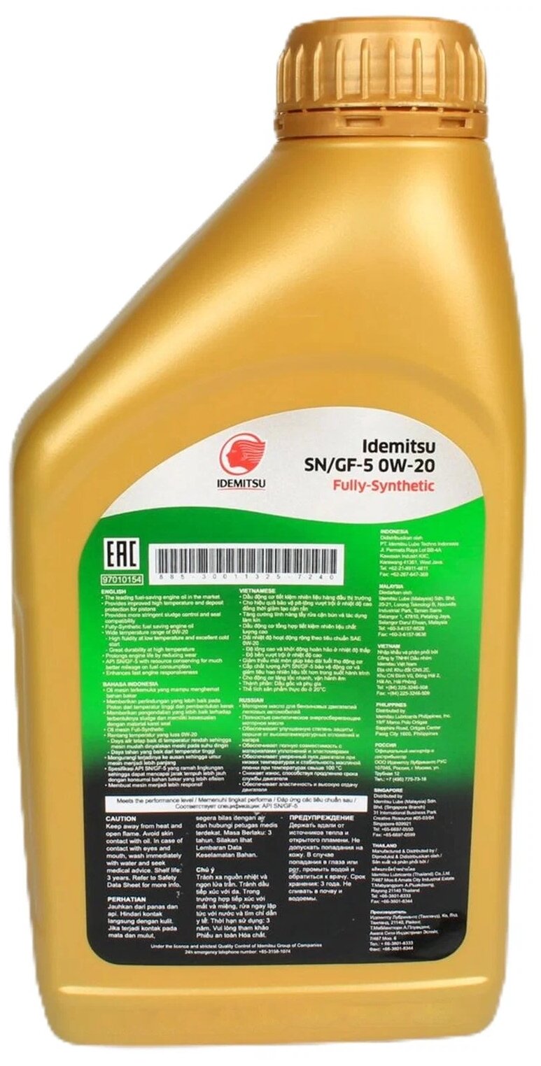 IDEMITSU 0w-20 1l Sn/Gf-5 F-S