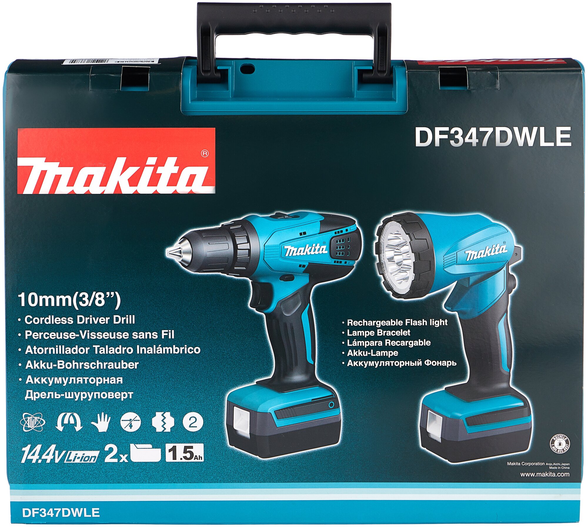 Дрель/шуруповерт Аккумуляторная дрель-шуруповерт Makita DF347DWLE + фонарь