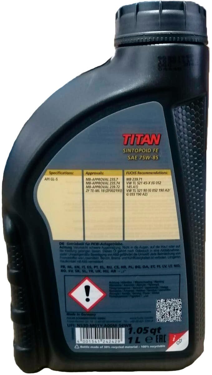 FUCHS 601411533 TITAN SINTOPOID FE 75W-85 1 API GL-5 MB 235.7