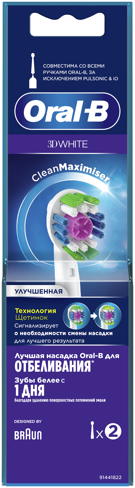 Набор насадок Oral-B 3D White CleanMaximiser для ирригатора и электрической щетки, белый, 2 шт.