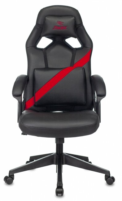 Кресло компьютерное игровое Zombie, экокожа, черное, красное, крестовина пластик - Кресло геймерское, с подголовником