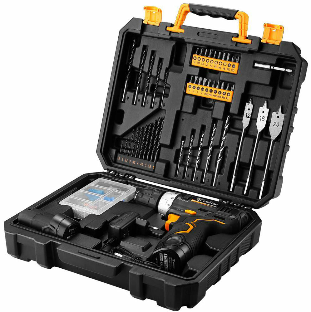 Дрель-шуруповерт аккумуляторная DEKO GCD12DU3 2*12В 2Ач Li-Ion, набор инструментов 92 предмета