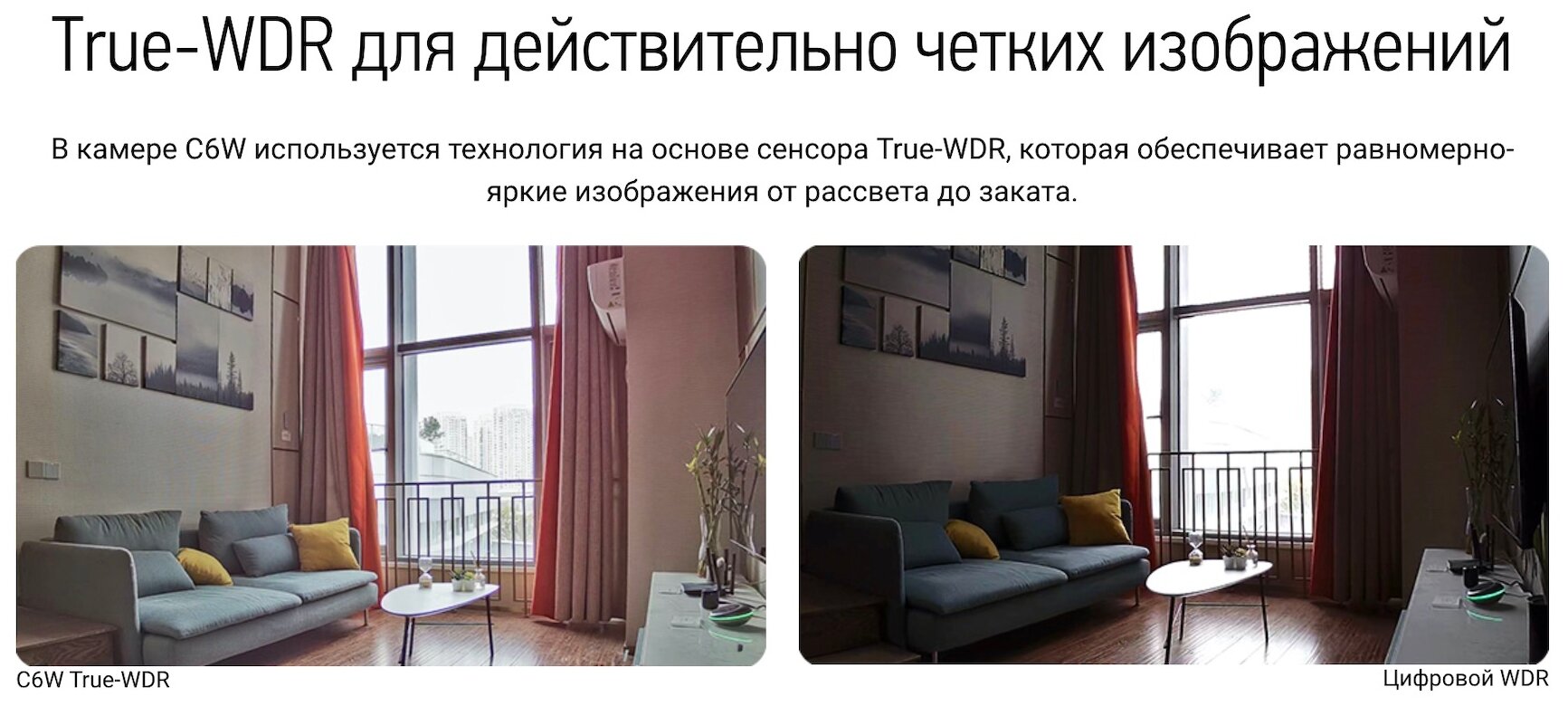 C6W 4Мп внутренняя поворотная 360 Wi-Fi камера c ИК-подсветкой до 10м
