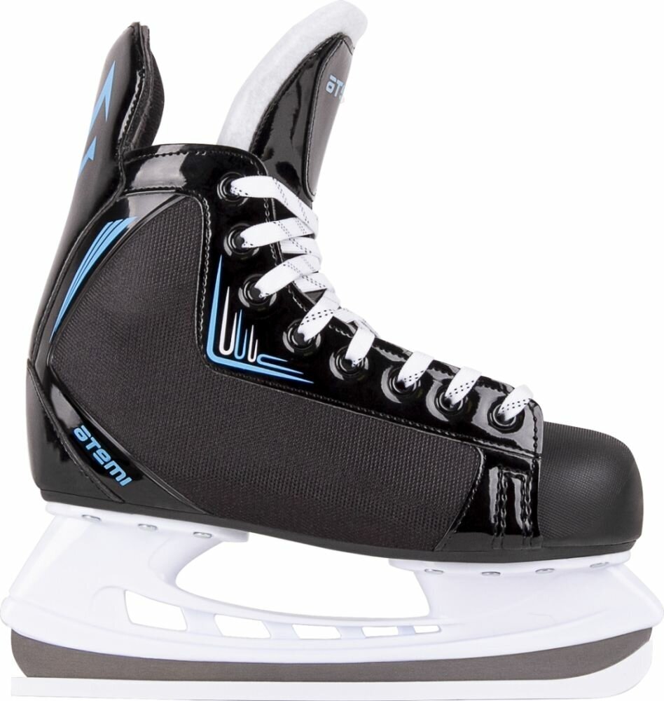 Лучшие цены. Коньки хоккейные Atemi Escape. Коньки высокого класса и сложного изготовления, ботинок полумягкий с кожанными вставками сделан из морозоустойчивых материалов, морозостойкий нейлон и искуственная кожа, (ПВХ+вельвет) с усиленным ударопрочным носком из PP (Полипропилен), стелька EVA, усиленный войлок на язычке 8 мм. Лезвие - высокоуглеродистая нержавеющая сталь 3ММ. Анатомическая поддержка щиколотки зафиксирует ногу и защитит от нежелательных вывихов, дополнительно усилены щиколодка, носок и пятка. Магазины в вашем городе.