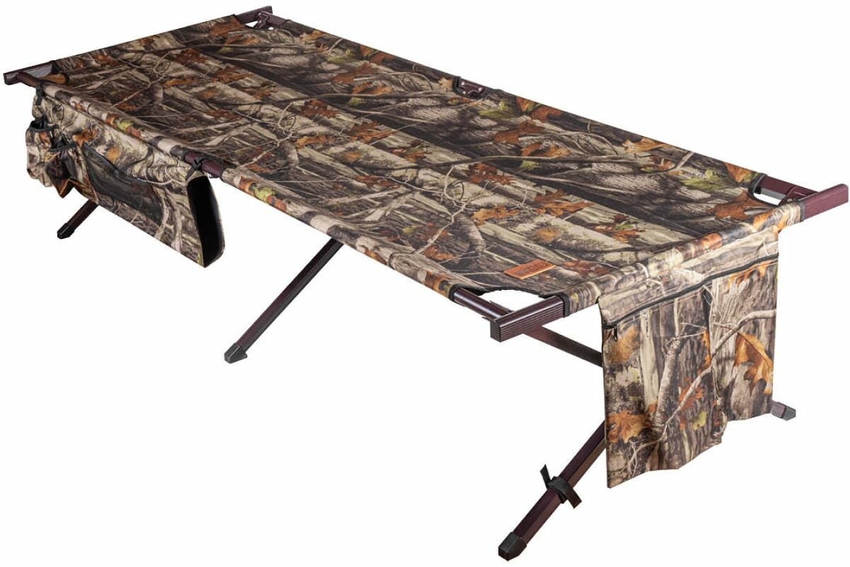 Лучшие цены. Кровать раскладная Camping World Forest Dream Big (чехол, боковой карманы для удочки или ружья, допустимая нагрузка 200 кг, размер 210х85х49 см, вес 7,9 кг, цвет камуфляжный) Походная кровать Camping World Forest Bed Big – отличное решение для комфортного сна в любой ситуации. Кровать раскладная туристическая пригодится всем любителям загородного отдыха. И в первую очередь она, конечно, порадует охотников. Магазины в вашем городе.