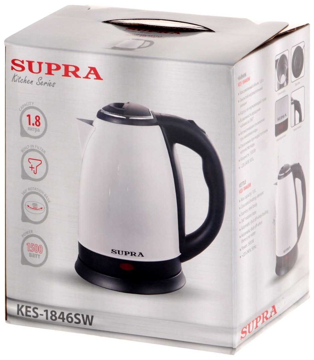 Чайник SUPRA KES-1846SW, 1,8л, 1500Вт, металл