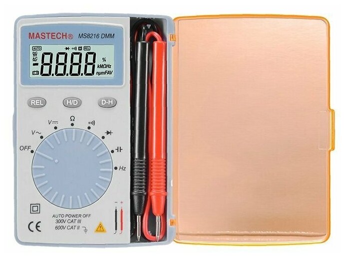 Лучшие цены. MASTECH MS8216 – суперкомпактный и легкий мультиметр поставляется в удобном пластиковом кейсе с отсеком для щупов. Прибор профессионального уровня измеряет постоянное и переменное напряжение (до 600 В), сопротивление, частоту, емкость, с его помощью можно тестировать диоды, транзисторы. Мультиметр оснащен большим дисплеем, функция памяти позволяет фиксировать данные. Пределы измерений выставляются автоматически, что исключает ошибки оператора и ускоряет работу. Есть защита от перегрузок. Магазины в вашем городе.