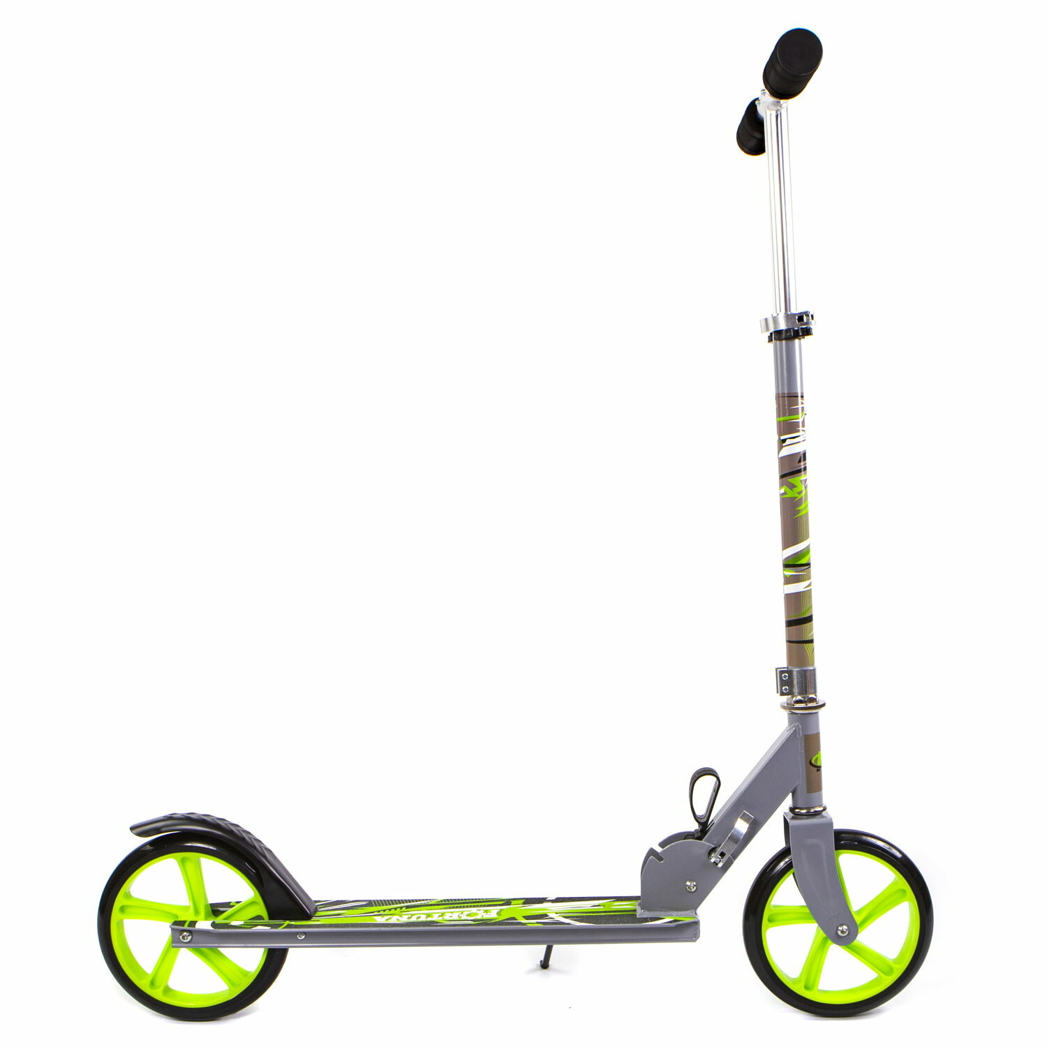 Самокат Navigator Fortuna 2-х кол.,алюм.комби,PU кол.200мм,рег.складн.руль,ручки складн.EVA,поднож.,87*11*93(73)см,г/п до 100кг,3,9кг,сер.-зел.
