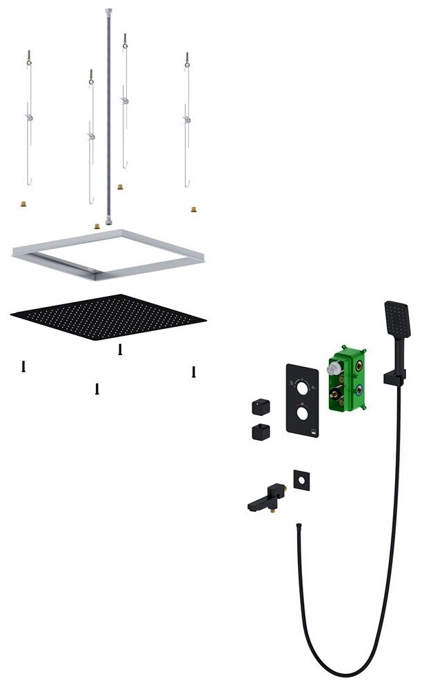 Лучшие цены. Характеристики Душевая система скрытого монтажа, с термостатом с квадратной лейкой (латунь) в стиле модерн Душевая система сделана из латуни класса А Коллекция Petruma Управление двухвентильное Цвет душевой системы Черный Цвет верхней лейки Черный Цвет ручной лейки Черный Поверхность Матовая Материал лейки тропического душа латунь Материал ручной лейки пластик Угол наклона верхней лейки не регулируется Штанга душевой системы не регулируется по высоте Тип излива поворотный Размер верхнего душа 500 x 500 мм. Магазины в вашем городе.