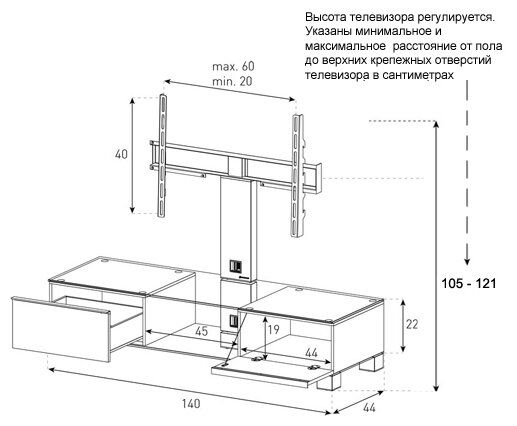 Подставка/крепление Тумба с ТВ стендом Sonorous MD 8140-B-INX-AML