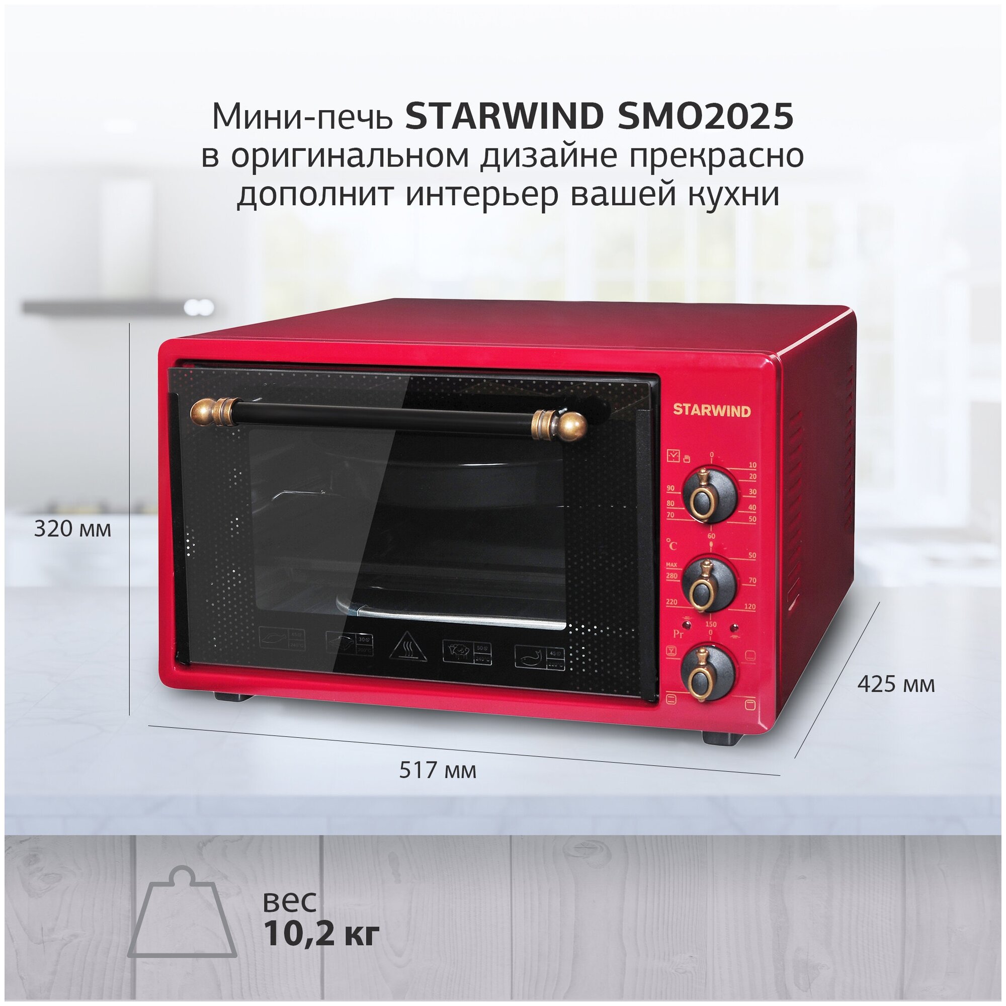 Электродуховка Мини-печь Starwind SMO2025, бордовый