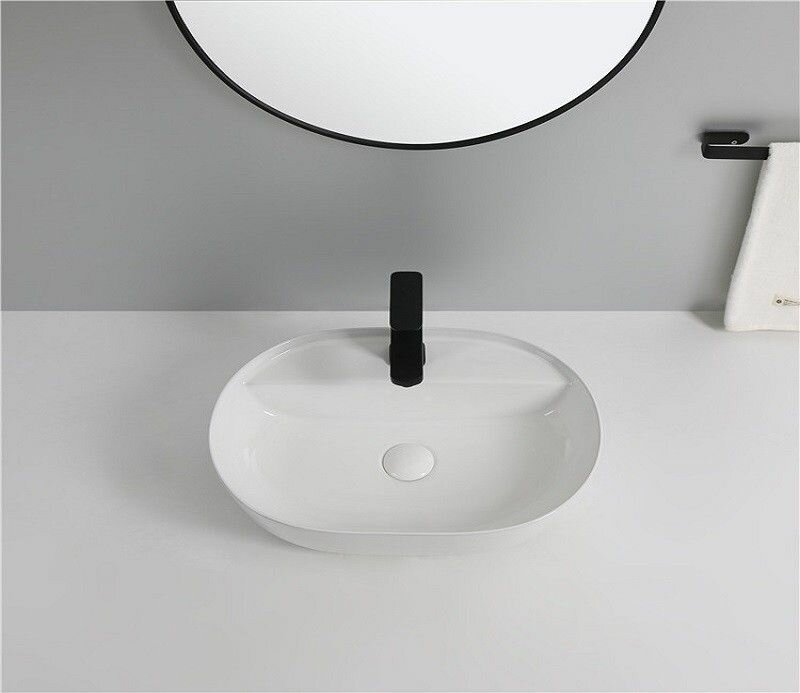 Умывальники Раковина для ванной, CeramaLux D1346, накладная, овальная, с антигрязевым покрытием, с отверстием под смеситель. Гарантия 10 лет.