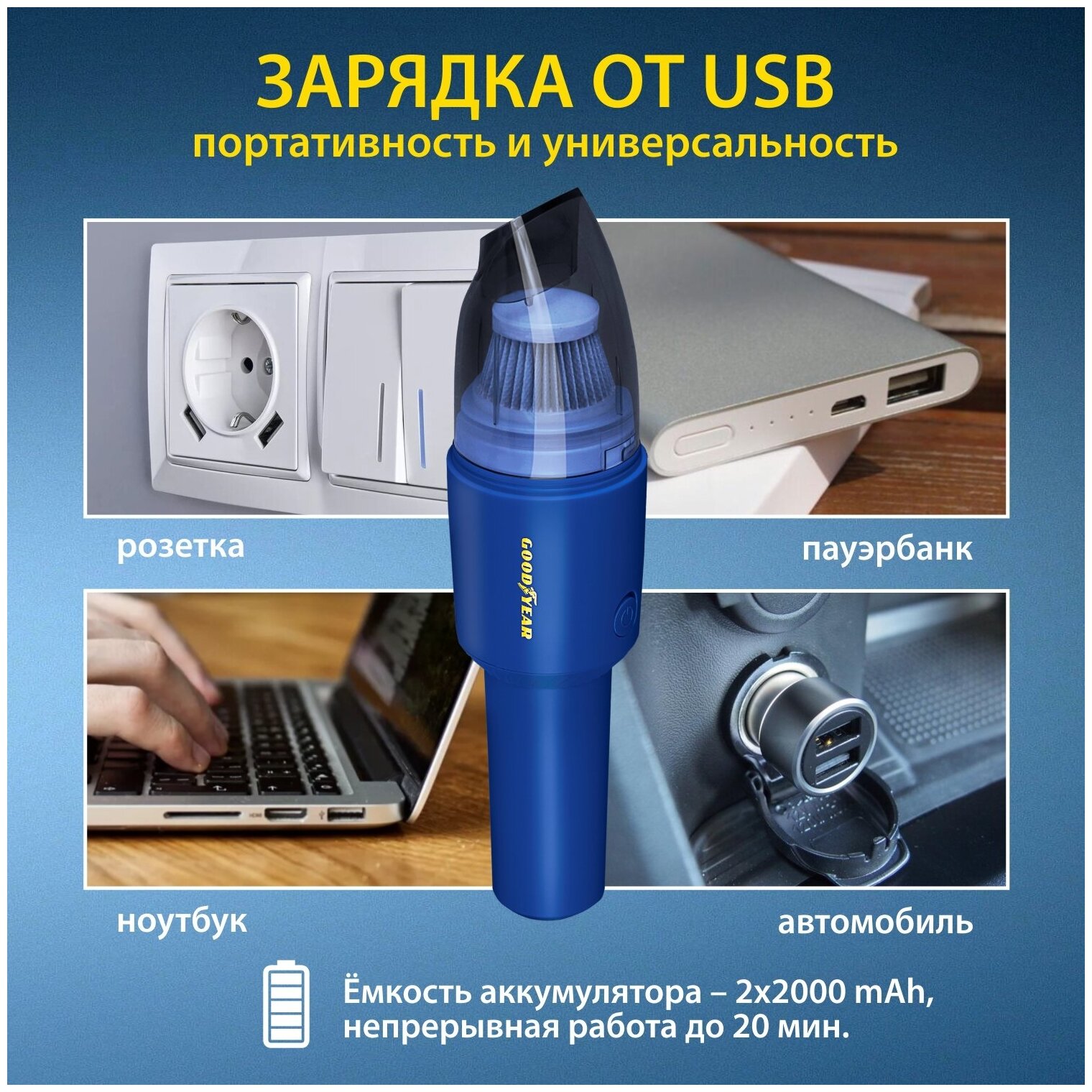 Автомобильный пылесос Goodyear GY-VC-03 беспроводной, 2 насадки, запасной фильтр GY000193 .