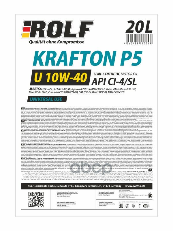 Моторное масло ROLF KRAFTON P5 U 10W-40, 20L