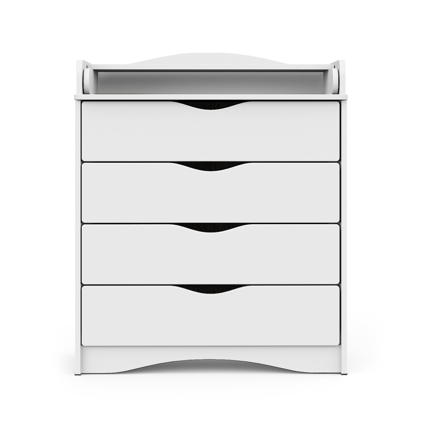 Лучшие цены. Стильный и элегантный пеленальный комод с плавными, повторяющимися формами. Четыре вместительных ящика на шариковых направляющих плавного хода. В комоде используется скрытый и надежный механизм раскладывания пеленального столика. У столешницы и раскладного пеленального столика скругленные углы для удобства и безопасности. Комод Lorenzo станет прекрасным дополнением к детской комнате для комфортного пеленания малыша и хранения детских вещей. Магазины в вашем городе.