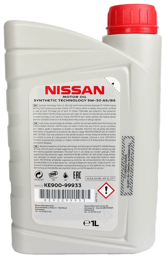 NISSAN MOTOR OIL 5W30 5л SL/CF A5/B5 EUR 7 010 ₽ Подробнее
