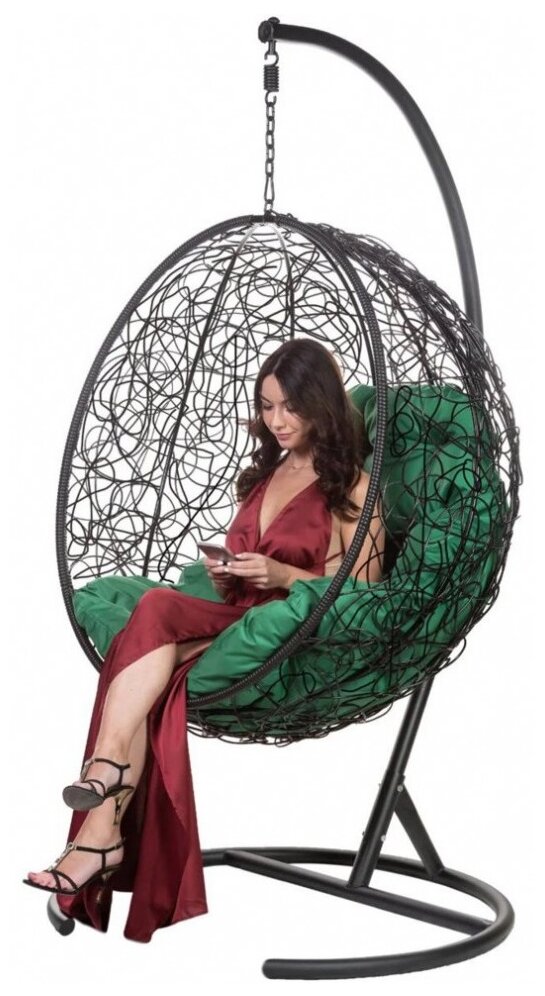 Кресло подвесное Bigarden "Kokos", черное, со стойкой, зеленая подушка