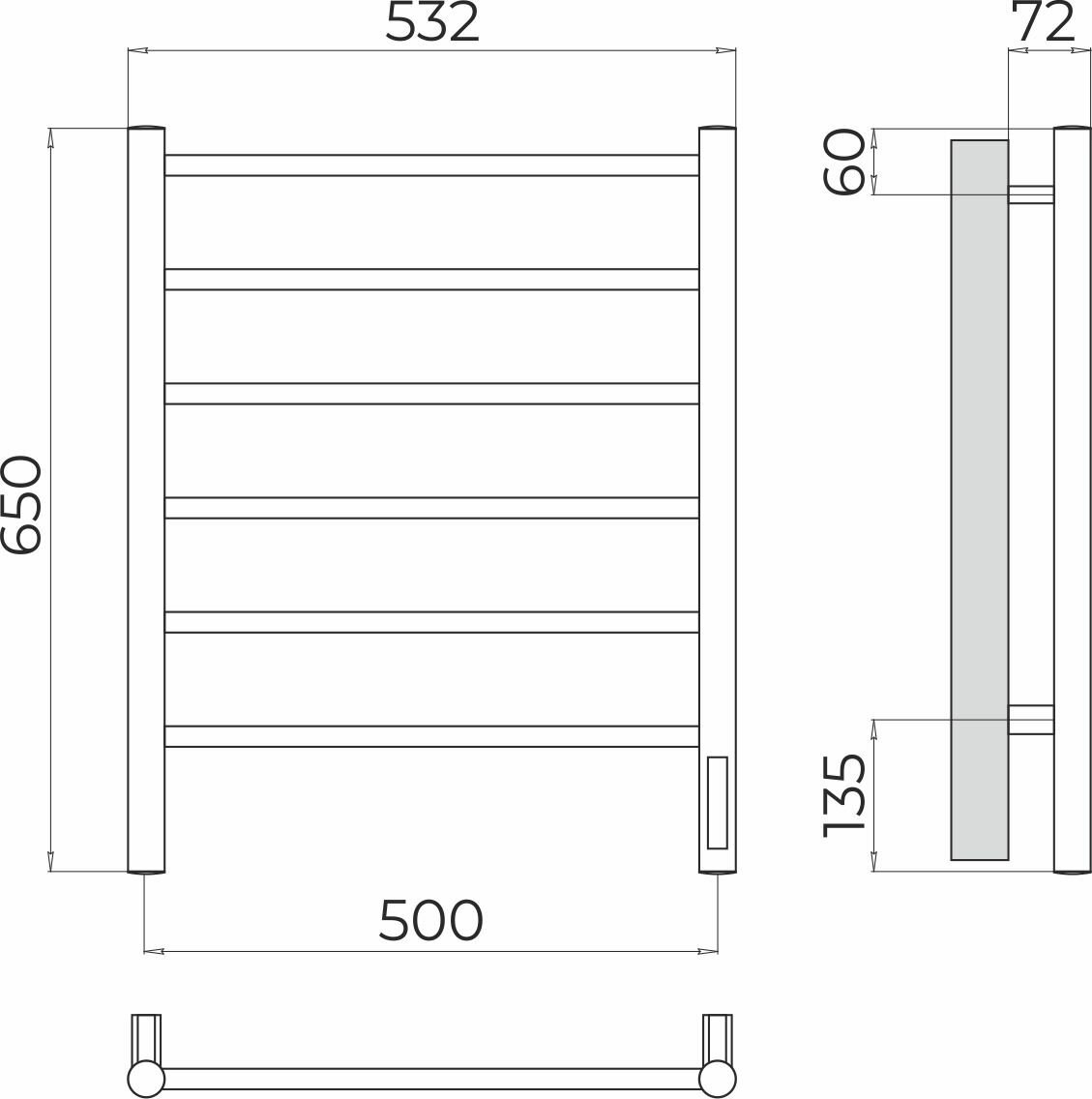КС Аврора quick touch (черный) электрический полотенцесушитель TERMINUS (482 мм / 600 мм / 450 мм)
