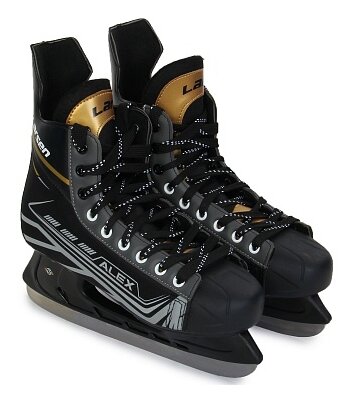 Лучшие цены. Коньки хоккейные Larsen Alex. Ботинок: нейлон, морозоустойчивый поливинилхлорид. Мыс: полиуретан. Язычок: войлок. Стелька: материал EVA. Стойка: полипропилен. Лезвие: нержавеющая сталь. Рекомендуются для начинающих игроков в хоккей. Магазины в вашем городе.