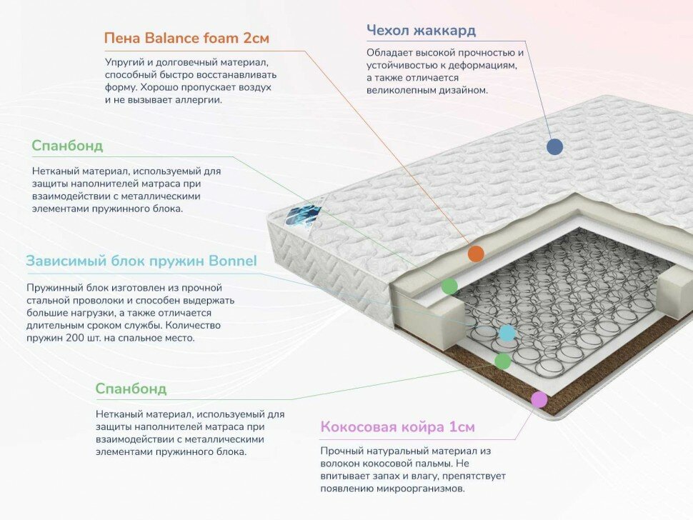 | Наполнитель | пенополиуретан, спанбонд, кокосовая койра |
