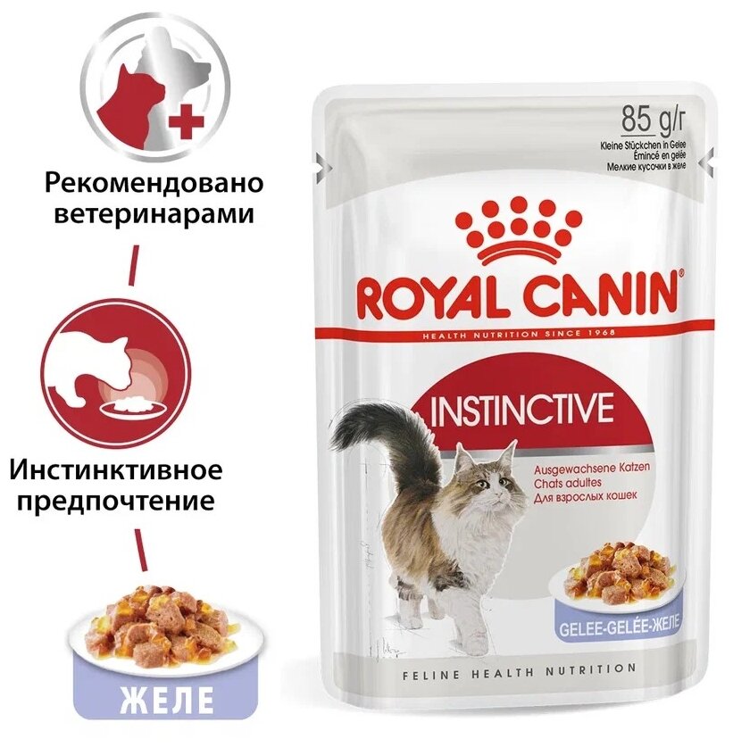 Лучшие цены. Инстинктив в желе: влажный корм для взрослых кошек в возрасте от 1 года до 7 лет. Особый макронутриентный профиль продуктов Royal Canin обеспечивает их высочайшую вкусовую привлекательность для кошек на долгое время. Разработано с учетом инстинктивных предпочтений взрослых кошек Способствует сохранению здорового веса Оптимальный для взрослых кошек макронутриентный профиль продукта Поддерживает естественный рН мочи 100% полнорационное и сбалансированное питание. Магазины в вашем городе.