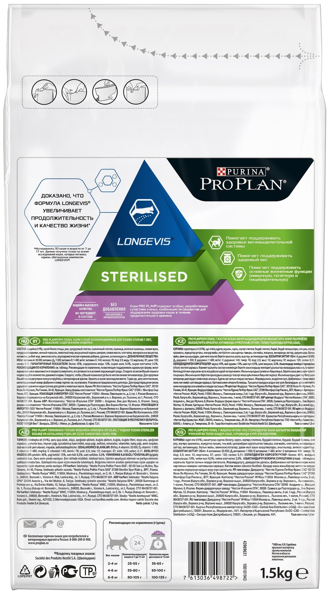 Сухой корм PRO PLAN® Sterilised Senior LONGEVIS® для стерилизованных кошек старше 7 лет, с высоким содержанием индейки 400 г