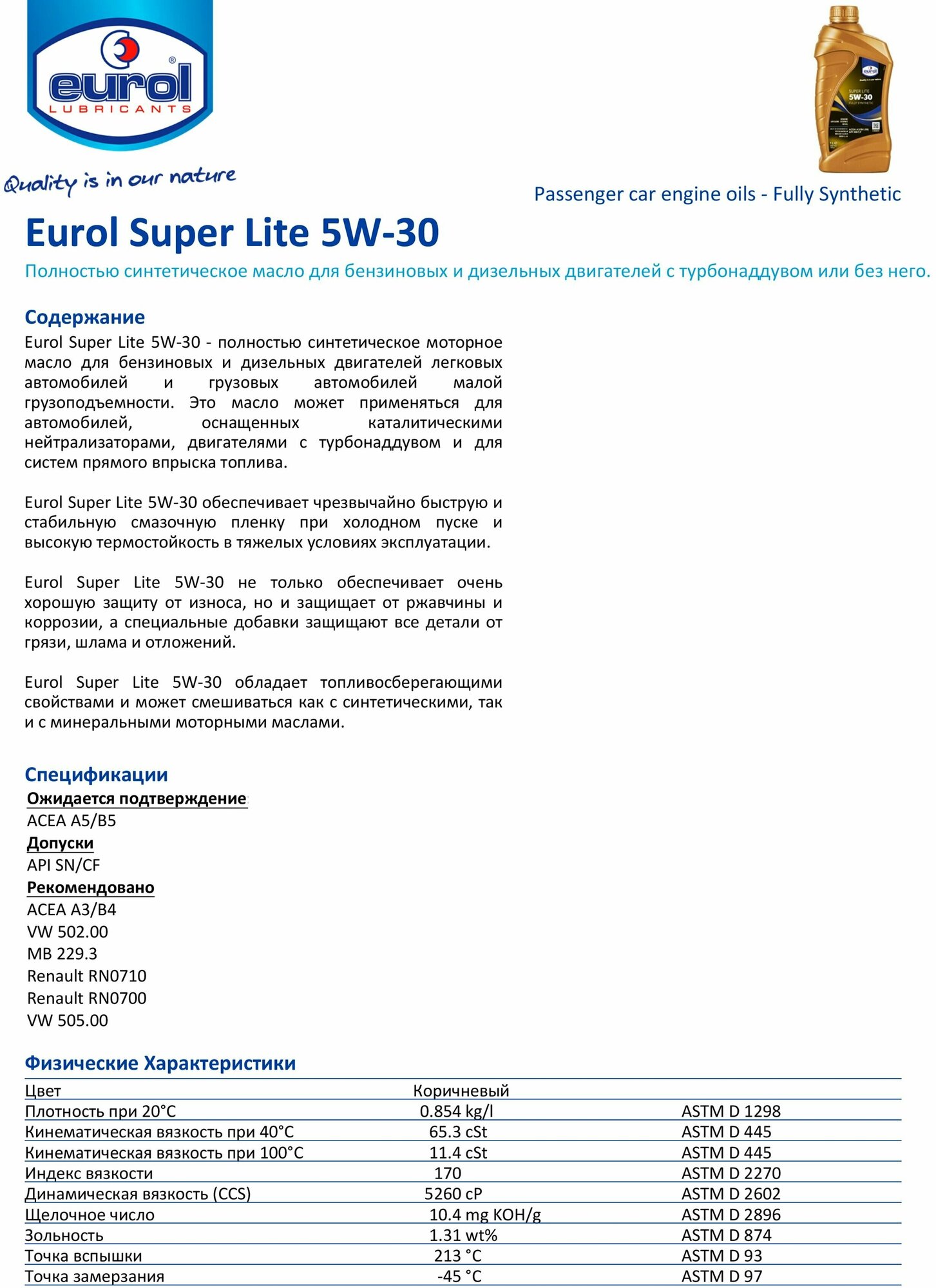 Лучшие цены. Полностью синтетическое моторное масло для бензиновых и дизельных двигателей Eurol® Super Lite - полностью синтетическое моторное масло для дизельных и бензиновых двигателей легковых автомобилей и легкого коммерческого транспорта. Это автомасло может использоваться в двигателях с или без турбонагнетателя и катализатора, а также в моторах с прямым впрыском топлива. Магазины в вашем городе.